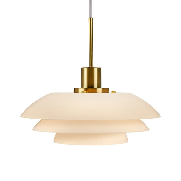 DL31 Pendant Opal/Brass has a diameter of 31cm and therefore works well over kitchen and dining tables where the family comes together.