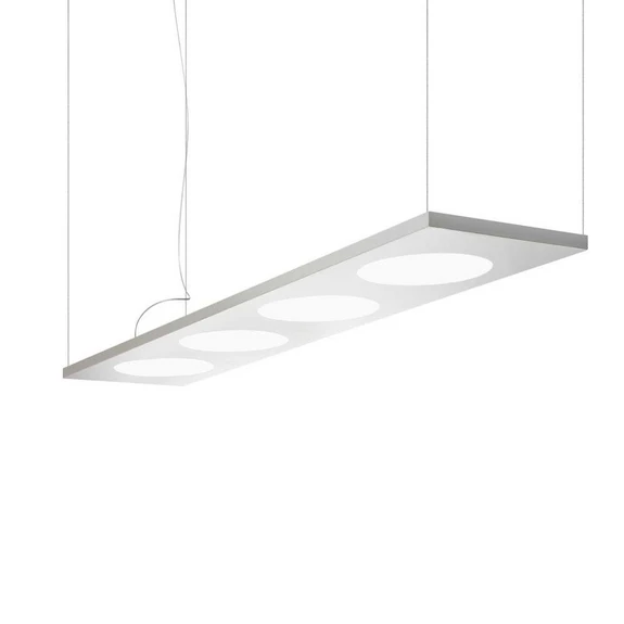 The Dolmen Pendant Aluminium creates good lighting conditions in the room with its practical lighting that relieves eye strain. The lamp comes in a versatile design with a white and silver-grey colour scheme that easily fits into a modern setting. The luminaire has a rectangular shape to ensure a wide light distribution. The LEDs are located behind and shine out through the white, round covers on the outside of the lamp for practical, far-reaching lighting. The covers act as diffusers that even out the light so that it appears soft and glare-free. At the same time, the round shape and the four light outlets give the lamp a playful expression that has a decorative effect in the room.