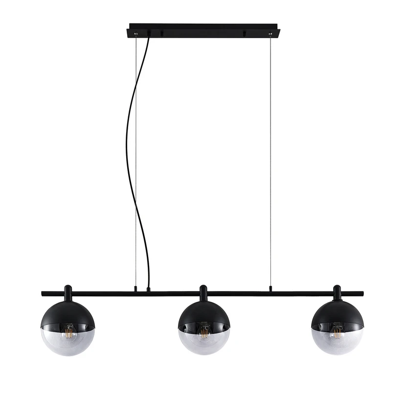 Dustian 3 Pendant is a design-oriented lamp that looks stunning above the dining table. The lamp has a unique two-part design split across three spheres with a matte black metal top and transparent glass bottom. This makes the light bulb visible and contributes to the cosy atmosphere.
