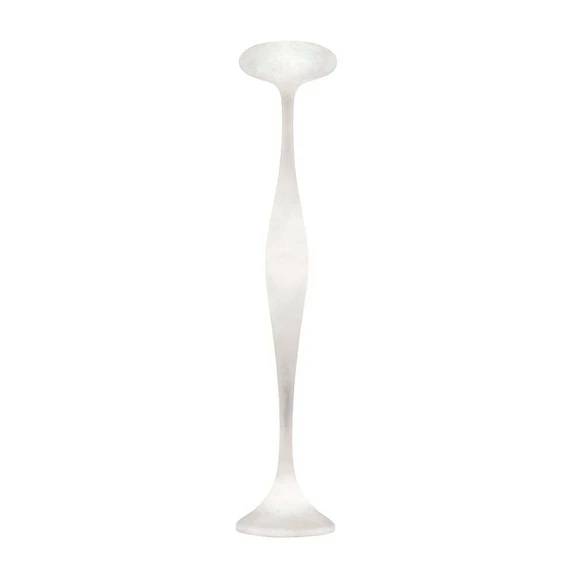 The body of the floor lamp is made of glass fibre and closed the entire way around. This ensures a soft glow that emerges from within the lamp and bathes the room in light. The three curves at the top, in the middle, and at the base create a special light in three parts, separated by diffuse gaps.