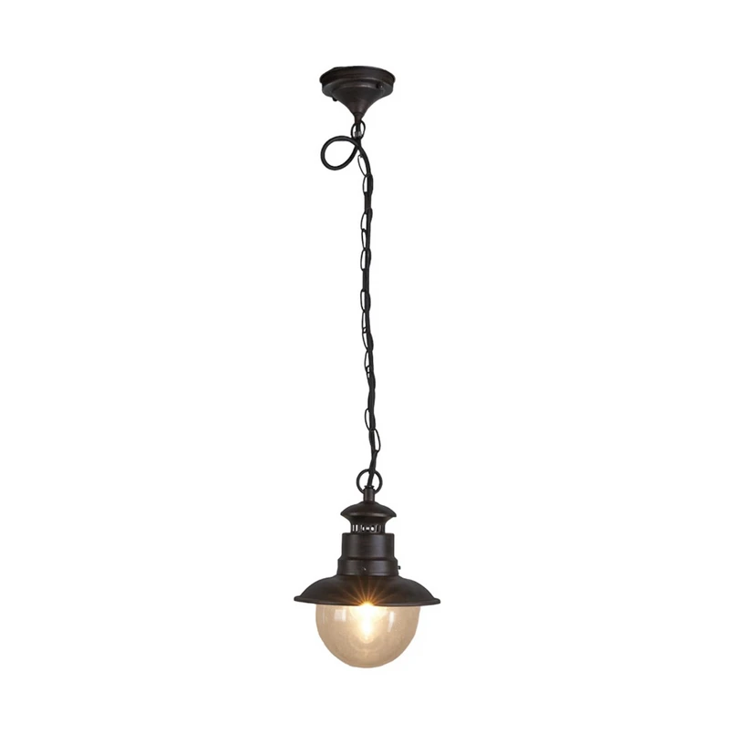 The Eddie Outdoor Pendant Rust/Clear catches the eye with its traditional and distinctly industrial design with an iron frame in a beautiful rust-coloured finish that adds nostalgic notes to the design. The lampshade is made of glass with a perfectly clear surface, allowing the light from the light source behind it to shine freely and unhindered into the surroundings. As the light source is fully visible, it is a good idea to choose a decorative bulb model, e.g. a filament bulb, to support the overall design of the lamp. The E27 socket opens up a wide range of options for light bulb selection. With an IP44 rating, the lamp is protected against ingress of water and dirt, so you can enjoy this outdoor model all year round.
