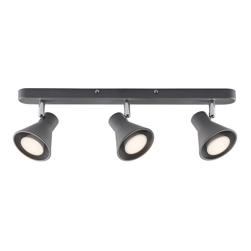 Eik 3 Ceiling Light Grey is a timeless lighting model that stands the test of time, so you can enjoy its practical lighting for many years to come. The lamp is shaped like a spotlight and therefore provides relatively focussed lighting. The light flows out from a wide opening in the simple, flask-shaped lamp head and is emitted clearly and directly to the surroundings.