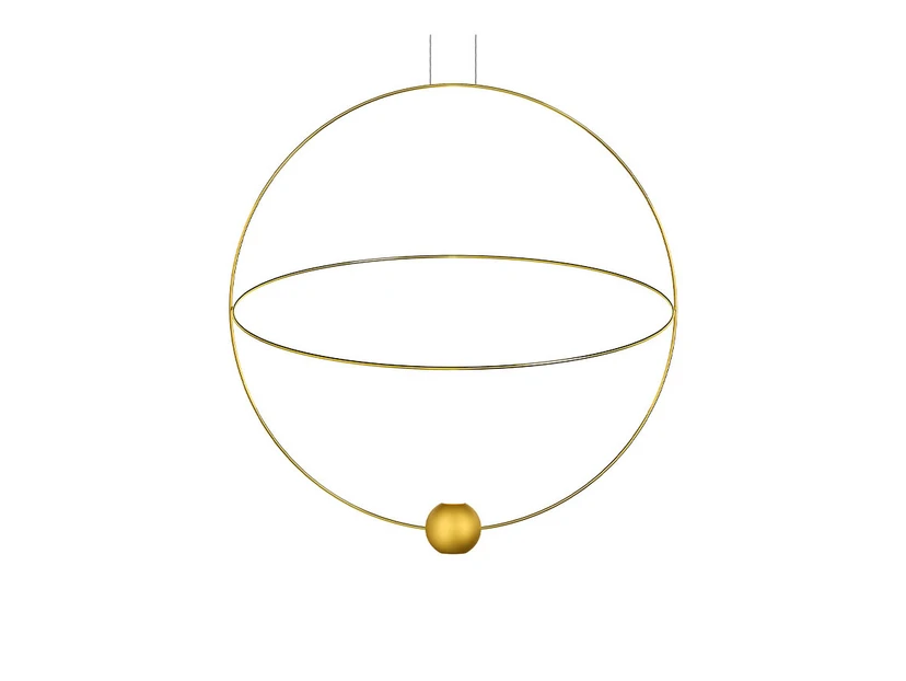 Elara Pendant Large 2700K Gold is a lamp full of movement and dynamism that creates a captivating interior design object as well as practical lighting in the room. The lamp's design is inspired by cosmic movements, planetary orbits and the ingenious interplay of celestial bodies. This is expressed through the thin and perfectly regular metal rings that form a beautiful overlap in the centre of the lamp. To complete the astral theme, the lower point of the vertical ring is fitted with a sphere that holds the light source of the lamp itself. This model has inbuilt LED technology with an efficient energy conversion that spreads a clear and direct light from an opening at each end of the sphere, creating a beautiful two-part light. When the light hits the horizontal ring, it creates a beautiful shadow pattern that can be varied by adjusting the ring, allowing you to experiment with different light patterns and personalise the lamp.