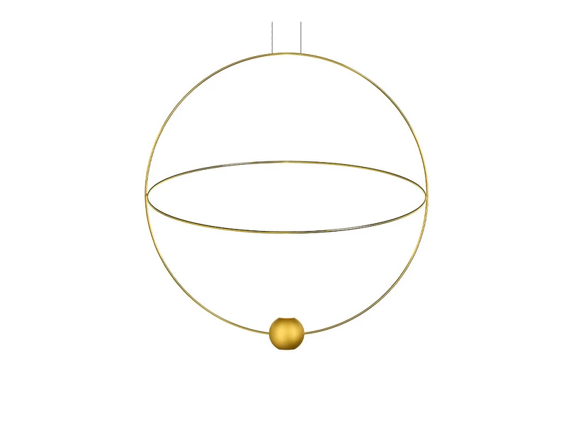 Elara Pendant Large 3000K Gold is a lamp full of movement and dynamism that creates a captivating interior design object as well as practical lighting in the room. The lamp's design is inspired by cosmic movements, planetary orbits and the ingenious interplay of celestial bodies. This is expressed through the thin and perfectly regular metal rings that form a beautiful overlap in the centre of the lamp. To complete the astral theme, the lower point of the vertical ring is fitted with a sphere that holds the light source of the lamp itself. This model has inbuilt LED technology with an efficient energy conversion that spreads a clear and direct light from an opening at each end of the sphere, creating a beautiful two-part light. When the light hits the horizontal ring, it creates a beautiful shadow pattern that can be varied by adjusting the ring, allowing you to experiment with different light patterns and personalise the lamp.