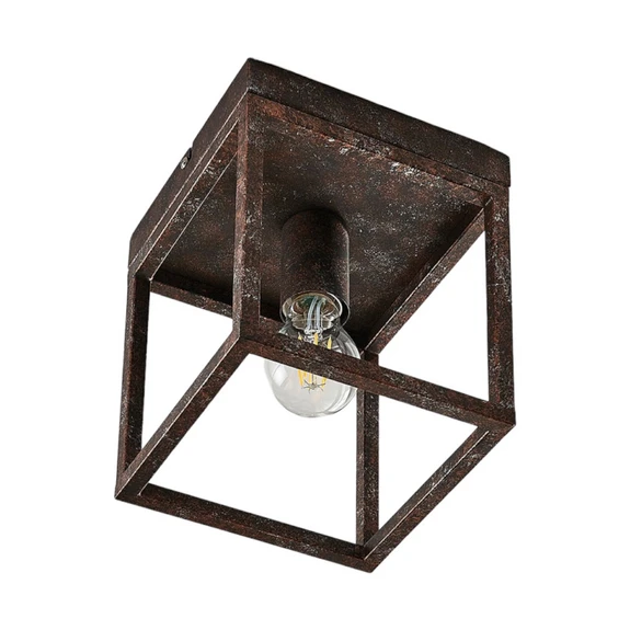 Emin Ceiling Lamp Rust showcases its light source in a lovely three-dimensional frame in a rusty metal characterised by its nostalgic charm. The frame gives the light free reins, and it lights up the room in a clear glow, creating a stunning base light. Feel free to add a decorative bulb that adds to the lamp’s antique aesthetic.