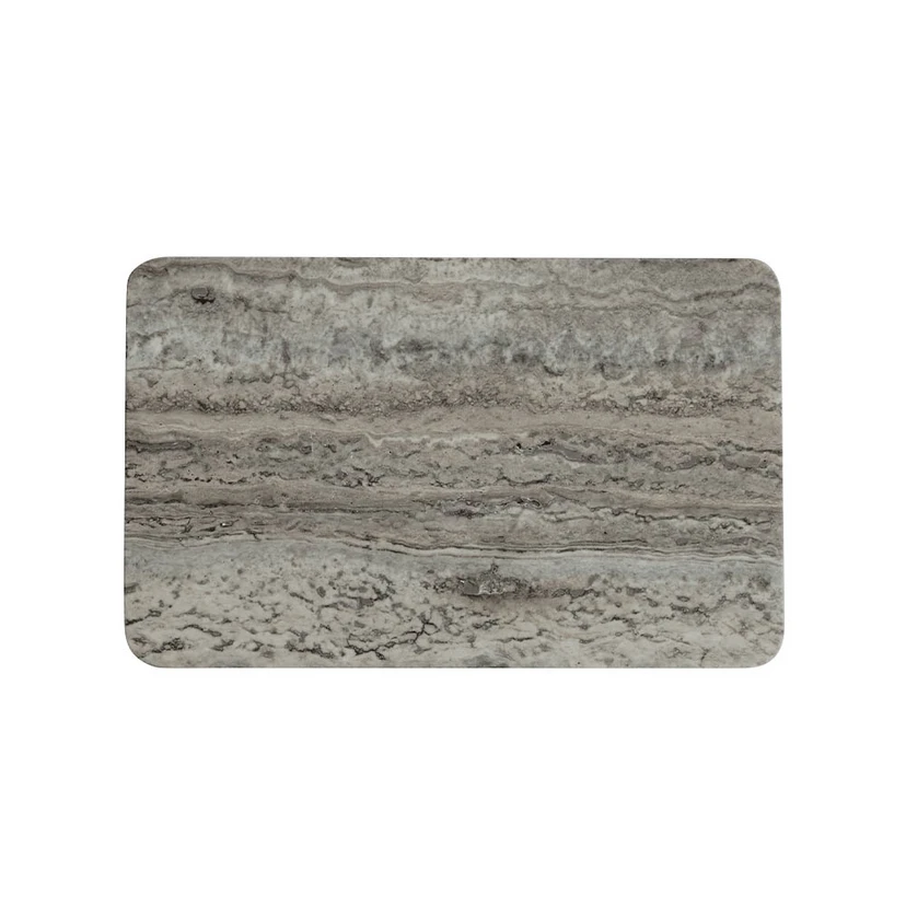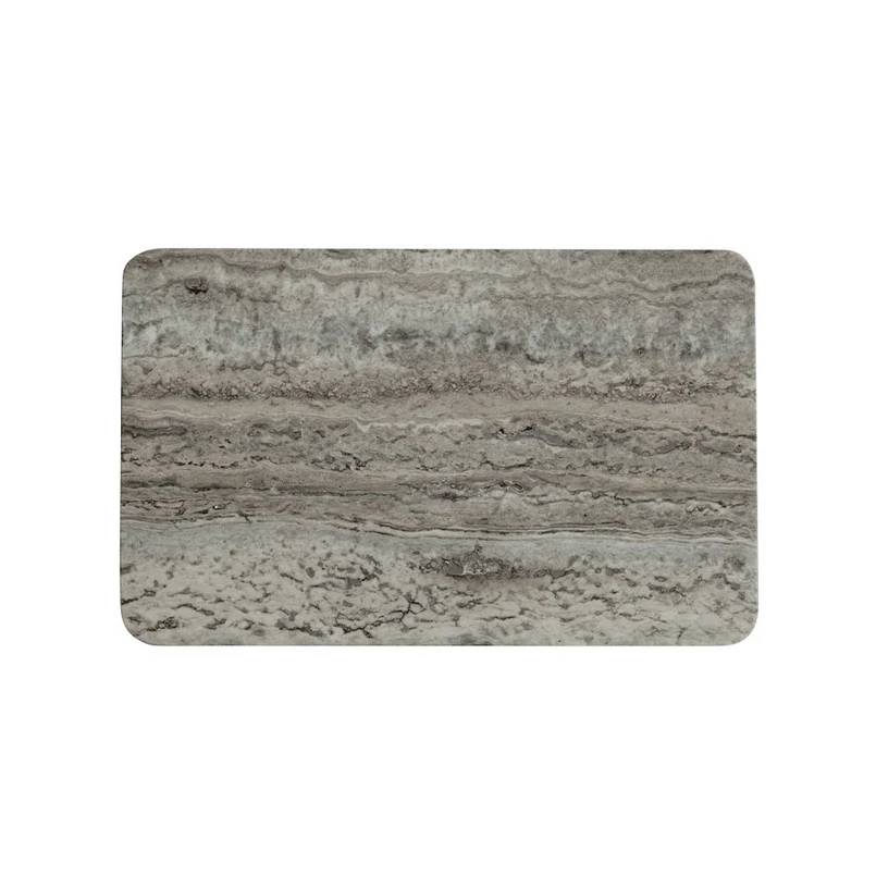 The Enkei Tray/Dish Rectangular Medio Earth from 101 Copenhagen is an elegant addition to your home. Made from silver travertine, this tray combines minimalist design with the natural patterns of the stone, creating a unique balance between form and function. Measuring 30 x 30 x 3 cm, it is ideal for displaying decorative items or serving guests in style.