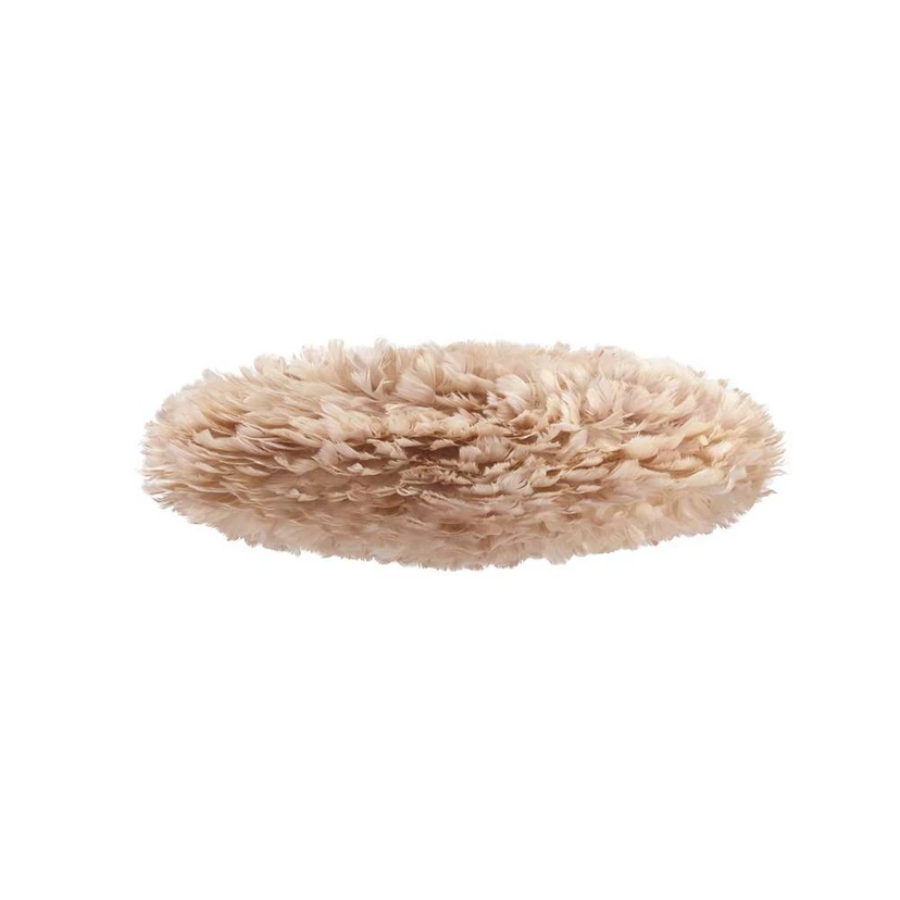 This beautiful and unique Eos lampshade is made from goose feathers. These feathers ensure that the light flows softly and beautifully from the lamp, and even when it's not switched on, it's a work of art to look at.