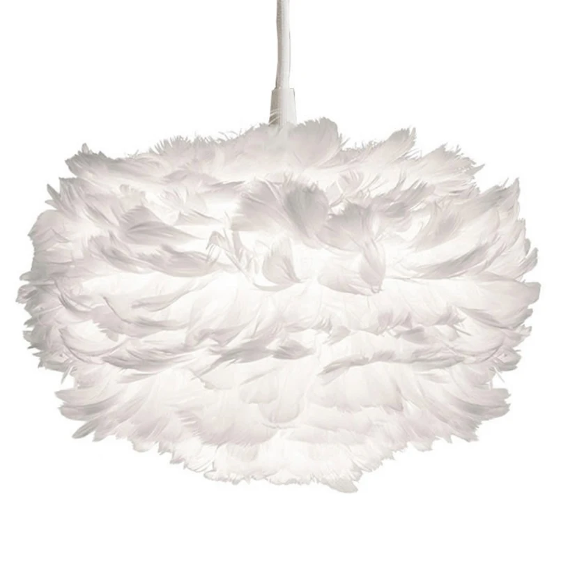This beautiful and unique Eos lamp is made from goose feathers. These feathers ensure that the light flows softly and beautifully from the lamp, and even when it's not switched on, it's a work of art to look at.