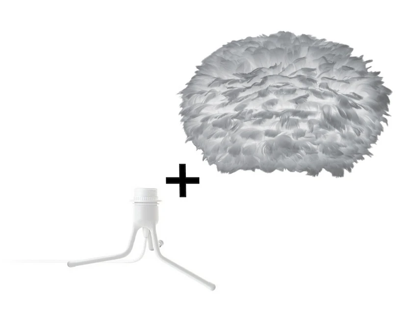 Eos Medium Table Lamp w/Mini Base Grey/White from Vita is a unique lamp made from goose feathers. These feathers ensure that the light flows softly and beautifully from the lamp and even when it is not switched on it is a work of art to look at.