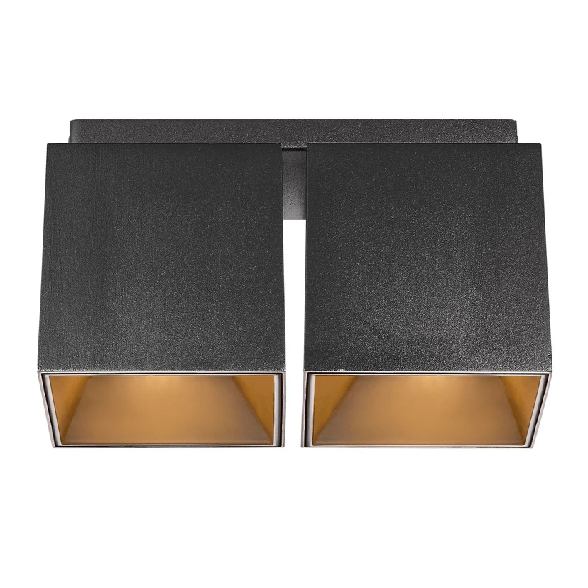 The lamp has a cubic basic structure with a square light output on the underside. It uses a GU10 light bulb that emits an efficient light. The light bulb is placed some distance inside the lamp body so that the light does not dazzle. This provides focussed lighting, which is especially good if you need extra light in certain parts of the room. The lampshade has a golden inner side that reflects the light and gives it a warm and deep character.