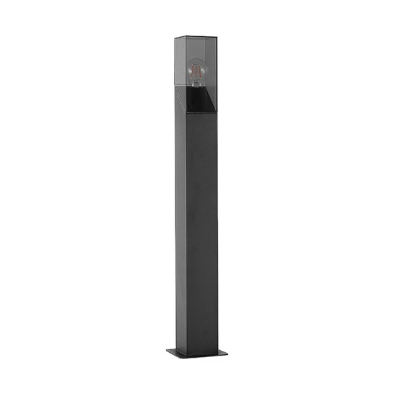 The lamp is constructed as a solid rectangular base made of aluminium with a matt, dark grey surface finish. At the top, the aluminium body slopes inwards to make room for a beautiful smoke-coloured lampshade that follows the rectangular lines without breaking the shape. From here there is a clear view of the internal light source, which is why we recommend choosing a decorative light source, such as filament or retrofit light bulbs, or light bulbs that provide special colour and light effects.