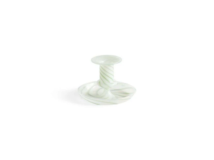 Flare Stripe Milk Small Green adds a sophisticated touch to atmospheric candlelight. This modern and design-oriented answer to the conventional candleholder is made of borosilicate glass in selected colours and with a tinted edge that creates an elegant and unique design. Borosilicate is a glass type that withstands high temperatures and is lightweight, ensuring a durable design.
