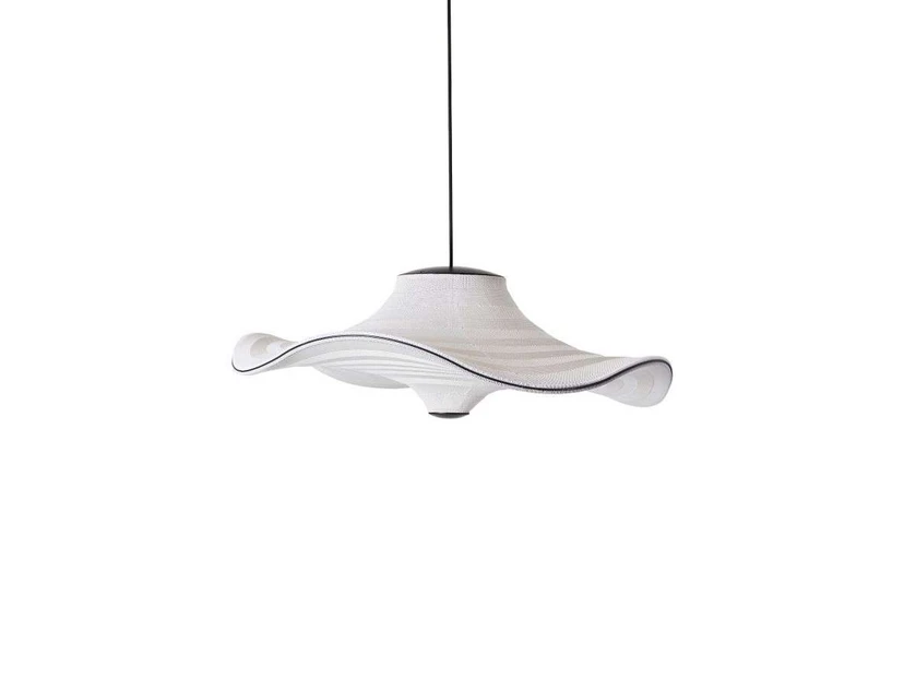 Flying Ø96 Pendant Ivory White has a soft, organic shape and is designed, manufactured and distributed with sustainability in mind. Flying's lampshade is made via a 3D knitting process, from the yarn to the final product, so there is minimal waste of materials. The lamp is designed for easy disassembly and reuse of the lamp's component materials.