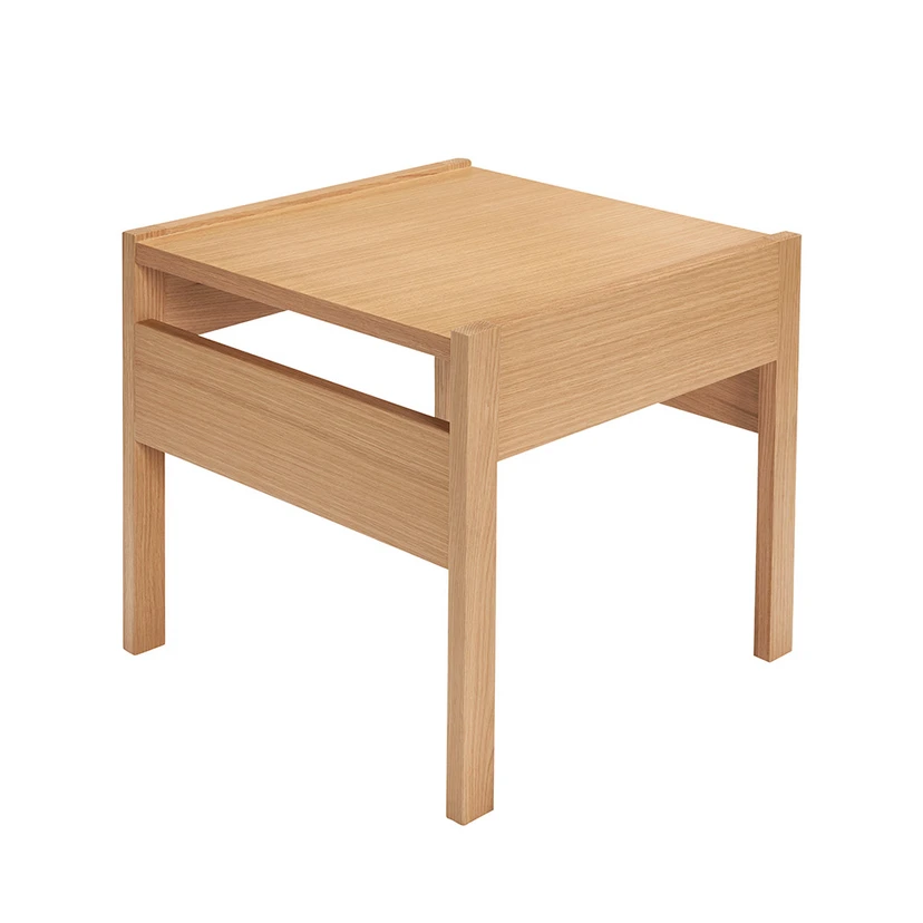 The Forma Side Table Natur from Hübsch is the ideal addition to your home where functionality meets aesthetics. This side table, also known as a coffee table, is created with a sharp and angular design that adds a modern touch to any room. It is made from FSC®-certified oak veneer, real oak and MDF, ensuring both durability and a warm, inviting atmosphere. The natural colour enhances the beauty of the wood and makes it easy to integrate into different interior styles. With a height of 45 cm, the Forma Side Table is perfect for storing your favourite books or displaying decorative items. The compact design makes it easy to place in the living room, bedroom or even in the hallway. Discover how this timeless piece of furniture can transform your space with its sculptural elegance and practicality.