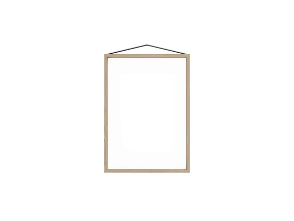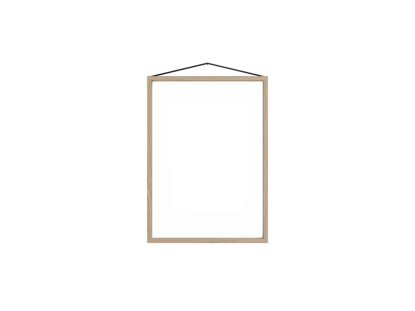 Frame A3 Oak frames the room beautifully. The frame is simply designed and consists of two sheets of acrylic glass, four mouldings and a rubber band. The band serves both to hold the frame together and to hang it on the wall. The simple yet ingenious construction allows the frame to be hung in both directions, opening up multiple possibilities for use. Whether it's a photograph, a piece of art or a diploma, you can be sure that Frame from Moebe will give it the attention it deserves.