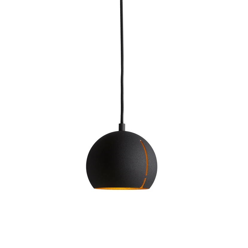 The Gap pendant Black/Brass is a simple and elegant pendant. Its name comes from the long slit that allows a sliver of light to shine through and create a graphic reflection of the golden light of the lamp. The raw look of the lamp is supported by the powder-lacquered metal and creates a sophisticated contrast to the inside, which has a feminine look in the form of brass.