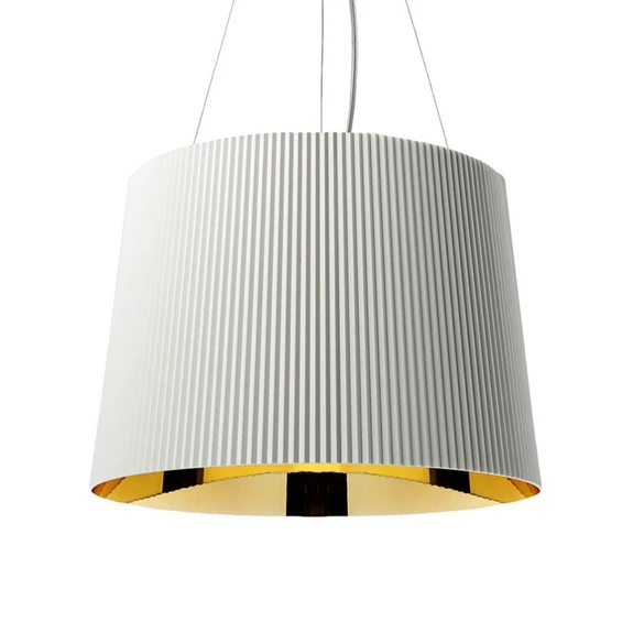 The pendant is available in three different editions – a transparent edition with or without colour and an edition with internal gold coating and a B&W lampshade. The pendant is now also available in chrome.