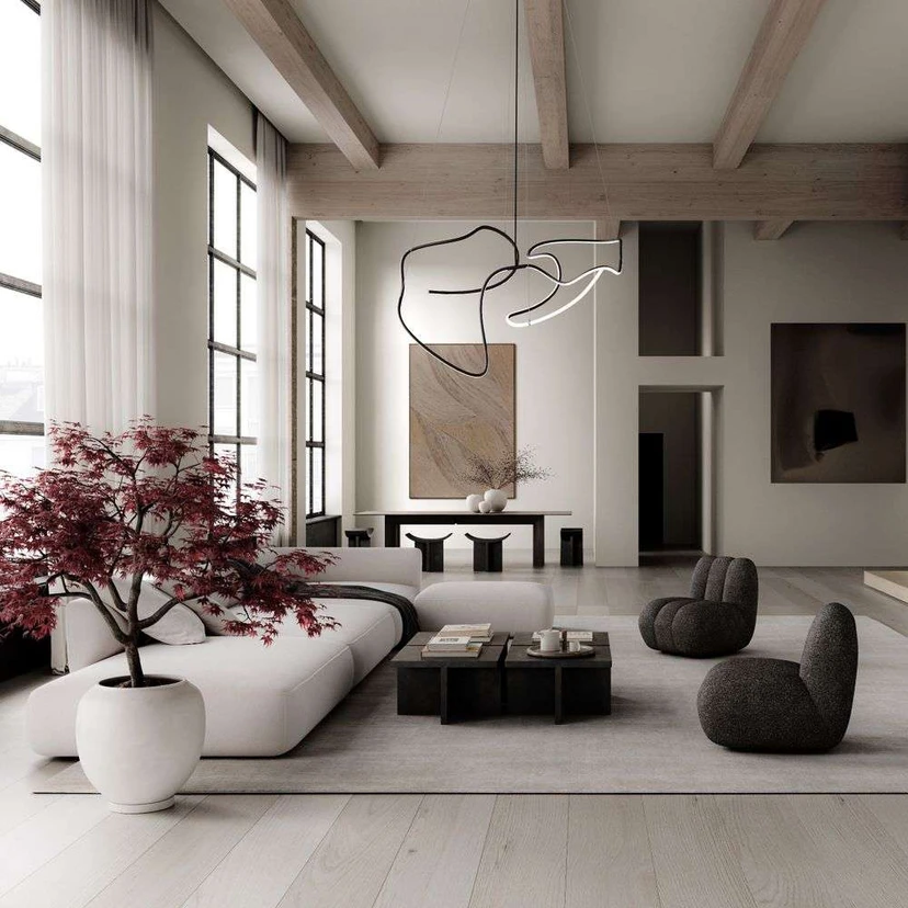 Ghost Chandelier Big Burned Black from 101 Copenhagen is a chandelier that draws inspiration from minimalist art and combines light with sculpture to create a graphic lighting aesthetic. Its distinctive white acrylic tubes extend in different directions, creating ambient lighting that resembles organic patterns. The design, derived from a hand sketch, adds an artistic and graphic atmosphere to the space. The ever-changing appearance of the Ghost Chandelier captures the viewer's attention and changes depending on the angle of view. No matter where it is placed, Ghost appears as a central element. The chandelier is available in three variants: Neon, Burned Black and Chrome, and in two sizes.