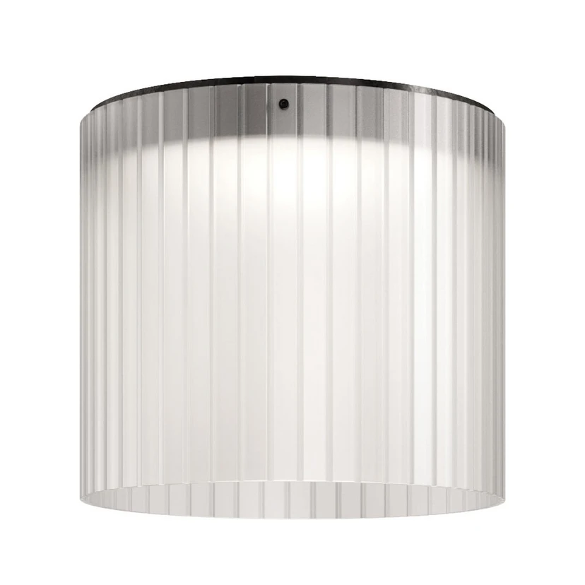 The built-in LED light emits a warm white glow that emerges into the room as a soft, glare-free glow. The main attraction is the cylindrical glass shape with grooves that bring to mind the fluting on Greek columns. This pattern projects lovely light effects onto the ceiling when the lamp is on, and the lampshade’s high edges contribute to a comfortable glow that reflects the light evenly into all directions.
