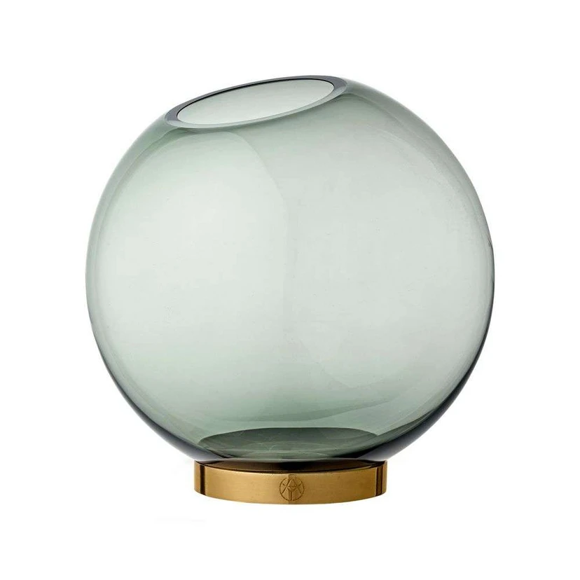 Globe Vase w. Stand Ø21 Forest/Gold presents itself in a classic and shapely design that deserves a prominent place in the interior. The unusual vase exudes modernity and refinement, reflected not only in its harmonious design but also in its exclusive materials. The vase itself is made of mouth-blown glass, while the base is made of brass with a matt finish.