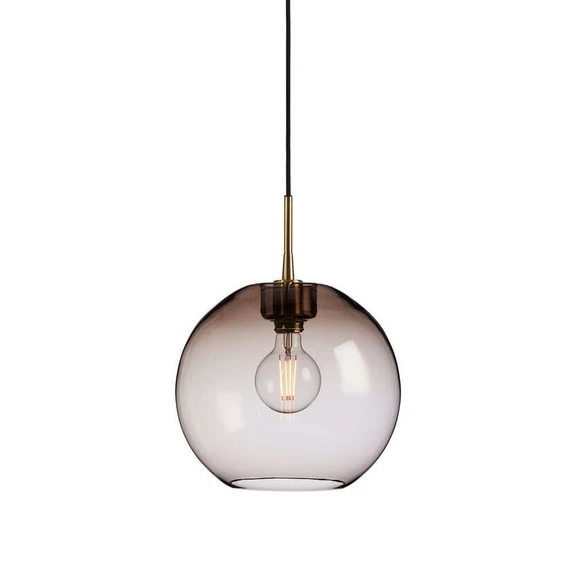 Gloria Pendant Ø320 Brass/Smoky Glasss from the talented Swedish designs at Belid is an elegant and exciting pendant that combines various expressions. The lamp—that might be confused with a chandelier at first sight—has an industrial touch that brings to mind 19th-century England. But it also has an unmistakeable modern touch, and the dark glass spheres and naked bulb give the lamp a contemporary look.