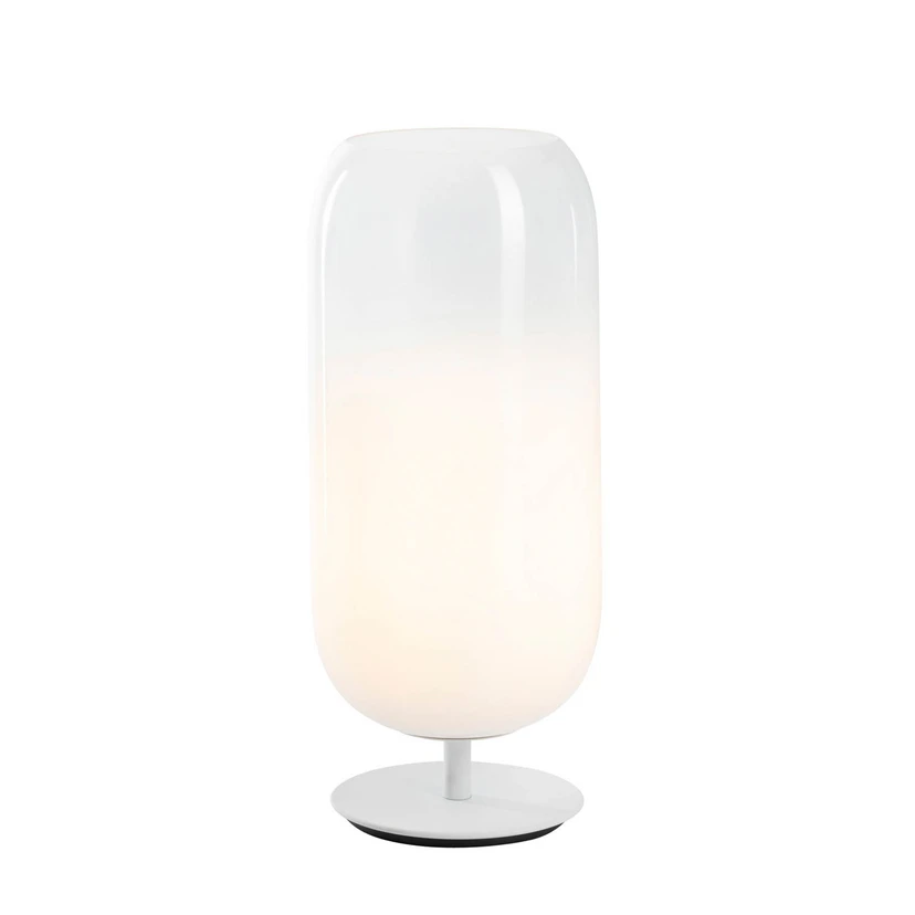 Gople Mini Table Lamp White/Alu is an exciting and innovative lamp. The beautiful mouth-blown glass is made using an ancient Venetian technique that gradually transforms the colour of the glass. Each lamp is therefore unique in colour and can vary slightly in shape. The simple shape of the lamp highlights the beautiful play of colours and the innovative finish.