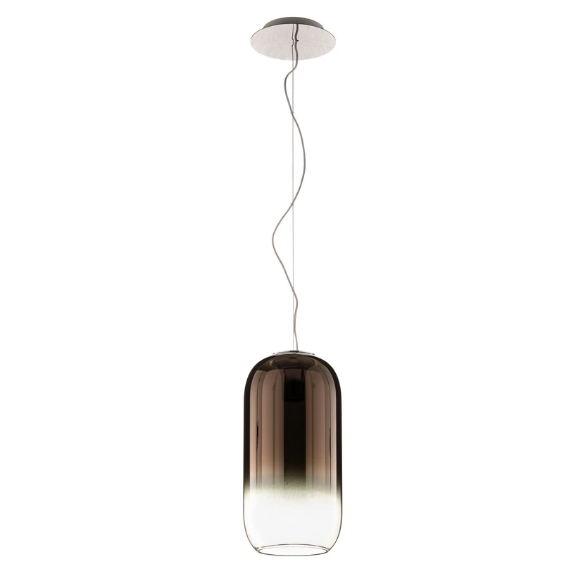 Gople Pendant Bronze is an exciting and innovative lamp. The beautiful mouth-blown glass is made using an ancient Venetian technique that gradually transforms the colour of the glass. Each lamp is therefore unique in colour and can vary slightly in shape. The simple shape of the lamp highlights the beautiful play of colours and the innovative finish.