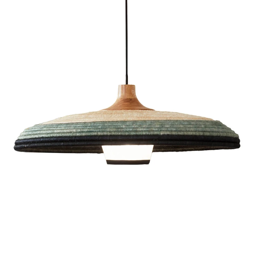 Grass Pendant M Blue is a beautiful lighting collection with a consistent and coherent design. The series consists of wall, table, floor and pendant lights in a variety of sizes and colours. What they all have in common is their beautifully woven lampshade in rattan and abacá, a type of banana tree native to the Philippines, which is known for its strong plant fibres used in the production of rope and cordage. The durable material and tight weave give the lampshade a firm, almost curve-like appearance that beautifully combines the potential of the natural material with skilful and well-executed design craftsmanship.