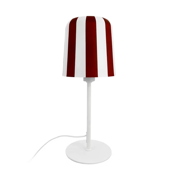Gry Table Lamp Dark Red/White from DybergLarsen is a table lamp that brings joy and colour into your home. Inspired by colourful carousels, fun Ferris wheels and hot air balloons, Danish designer Gry Fager has created a lamp that makes people smile. With her background in textiles, Gry has taken recognisable patterns and put them in a new context, resulting in a unique and happy lamp. Gry Table Lamp is made of white metal with red stripes and has a matching white fabric cord and a refined brass detail on top. With a height of 49.5 cm and a shade diameter of 20 cm, this lamp fits perfectly on any table where it can spread light and joy. Let your imagination run wild and let the Gry Table Lamp bring colour and life into your home..