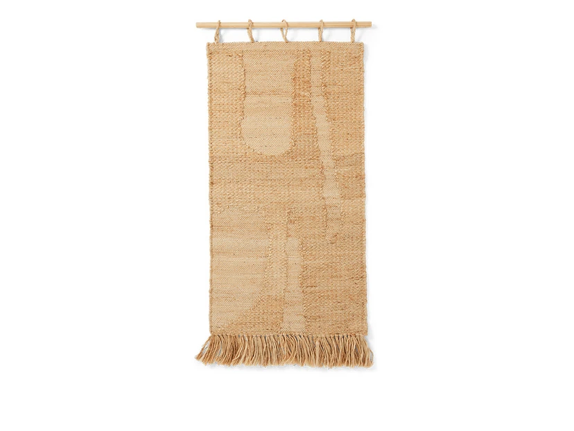 The Harvest Wall Rug 50x100 Natural from Ferm Living is the perfect choice if you want to add a touch of tactility and elegance to your home. This wall rug, also known as a wall hanging, is made from 100% natural jute and hangs beautifully from a beech tree pole. It acts as a modern work of art that combines the organic with the contemporary. The light fringe at the bottom creates a pleasant contrast that adds depth and texture to your wall decoration. The Harvest Wall Tapestry is ideal for creating a warm and inviting atmosphere in any room, whether it's the living room, bedroom or hallway. The natural material and neutral colour make it easy to integrate into different interior styles, from minimalist to bohemian. Make this unique rug the centrepiece of your wall art and see how it brings life and character to your home..