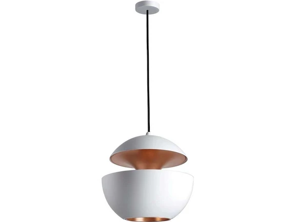 Here Comes The Sun Ø350 in white/copper was designed by Bertrand Balas in 1970. Balas was born in Toulouse in 1935 and the lamp was inspired by the sunset over the Garonne.