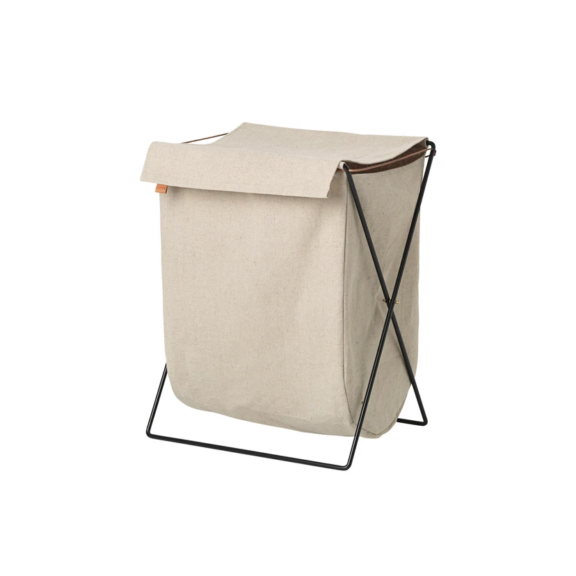 The Herman Laundry Stand Black is for those who want practical furnishings for everyday chores, but in an aesthetically pleasing design that helps beautify the interior. The basket has a metal frame with a black powder coating, complementing brass elements and a wide sack in a tightly woven canvas made of 100% cotton canvas in a natural beige-brown colour. The basket is fitted with a lid in a matching textile, effectively hiding the contents and keeping the room looking neat and tidy.