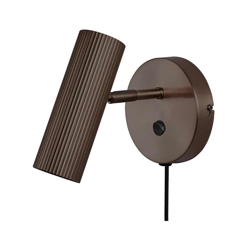 The Hubble Wall Light Bronze from Globen Lighting is the perfect addition to your home if you are looking for a stylish and functional wall light. This wall light is made of bronze painted metal, giving it an elegant and modern look. The unique ribbed, tubular lampshade can be adjusted in different directions so you can easily customise the lighting to suit your needs. With a 200 cm long black textile cable, Europlug and a black switch on the wall plate, the lamp is both practical and easy to install. Even though the switch is not a dimmer, the lamp can easily be used for fixed installation if you wish. Hubble Wall Light Bronze is ideal for creating a cosy atmosphere in the living room, bedroom or hallway where it serves as both a decorative and functional light source.