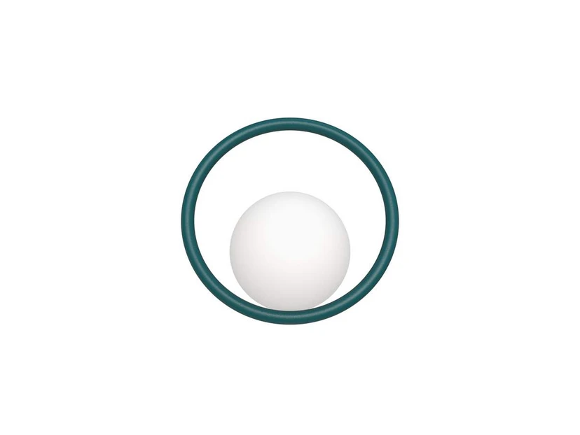 Hula Hoop Wall Light HW Peacock Green encapsulates the playful, colourful style that characterises the Swedish design company Swedish Ninja. The mastermind behind the beautiful design is Stefan Börselius, who designed the lamp inspired by the classic hula-hoop ring that is part of many people's childhood memories. The round shape is repeated in the colourful ring as well as in the white, spherical glass shade placed off-centre, giving the lamp a modern, design-oriented look.