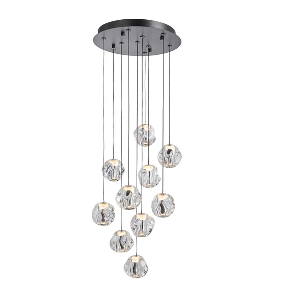Ice Ball 10 Pendant Light Transparent from Loom Design is a unique lighting solution that combines style and functionality. This pendant light, with its 10 clear acrylic shades, creates a unique visual expression that will impress in any room. The modern matte black canopy and cord, combined with an elegant chrome finish, make this lamp a sophisticated choice for your interior design. With 10 LED lights of 4.2 watts and a warm colour temperature of 2700 Kelvin, the Ice Ball 10 offers pleasant and atmospheric lighting that creates a welcoming atmosphere. The pendant light is ideal for larger spaces such as living rooms or halls where its impressive design can create a dramatic lighting experience. Made from metal and plastic, this lamp is both durable and stylish. If you want to add a touch of elegance and functional lighting to your home, the Ice Ball 10 is the perfect choice.