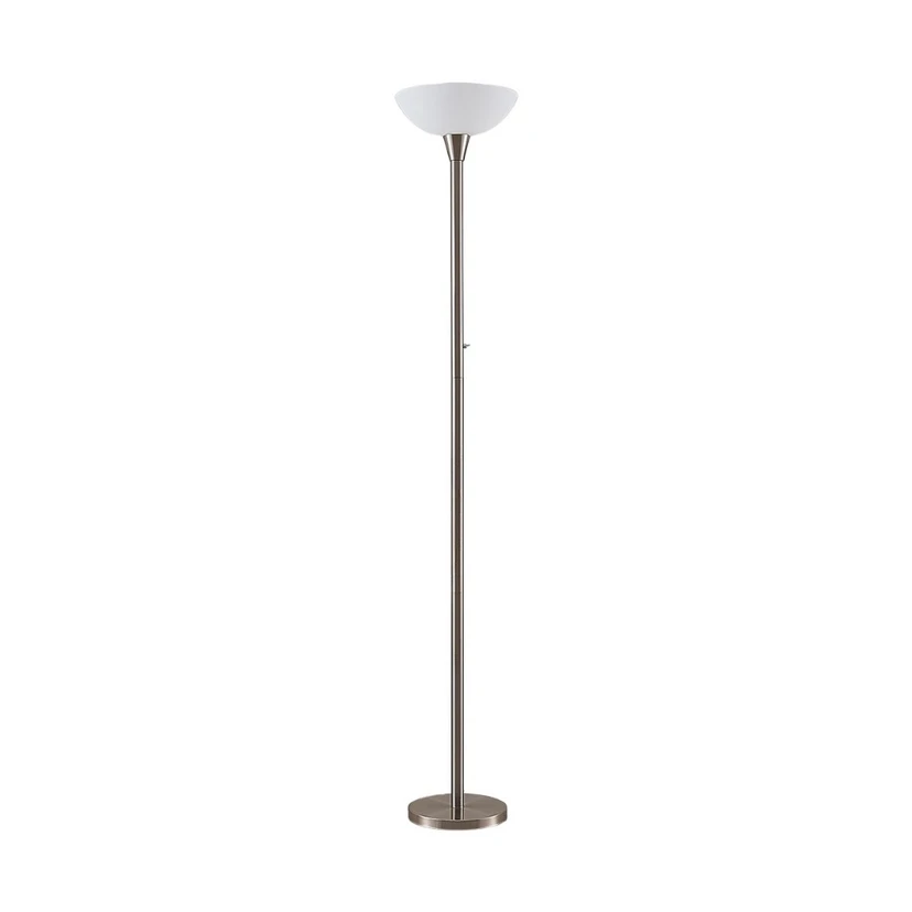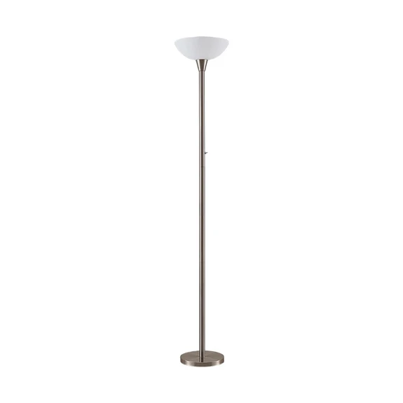 Ignacia Floor lamp Nickel/Opal is the perfect lamp for those looking for stylish supplementary lighting for the living room or a beautiful backlight in the sofa corner or bedroom. The lamp is characterised by a metal frame with a beautiful, shiny finish and an upward-facing glass shade in the shape of a bowl.