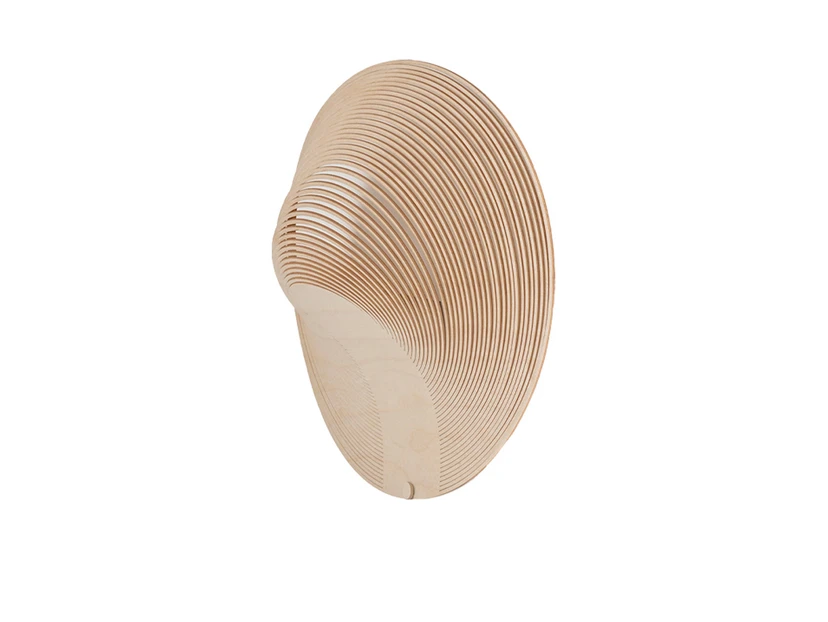 Illan Wall light 2700K Birch by Luceplan is an elegant wall light that combines modern design with technological innovation and sustainability. Created by Zsuzsanna Horvath, this wall light is part of the Illan series and is characterised by its unique form and functionality. The lamp consists of a die-cast aluminium element that is mounted on the wall and contains an LED light source that emits a soft, warm light upwards. The laser-cut wooden structure, which is extremely thin and flexible with a diameter of 31 cm, encloses the lamp body and creates the characteristic geometric design. The lampshade is made from surplus material from the production of the Illan pendant model, emphasising the lamp's sustainable profile. This wall light is ideal for creating a cosy atmosphere in the home, whether in the living room, bedroom or hallway. Discover the entire Illan range and add a touch of modern elegance to your home.