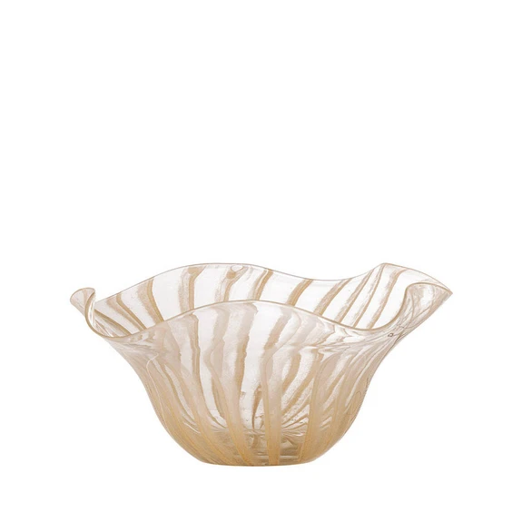 The Imri Rose Bowl - Bloomingville is an enchanting addition to your home accessories. This bowl from renowned brand Bloomingville is made from striped coloured glass, creating a unique and eye-catching look. With its wavy edges and elegant shape, it adds a touch of sophistication to any room. The pink colour creates a soft and inviting atmosphere that fits perfectly in modern as well as classic interiors.