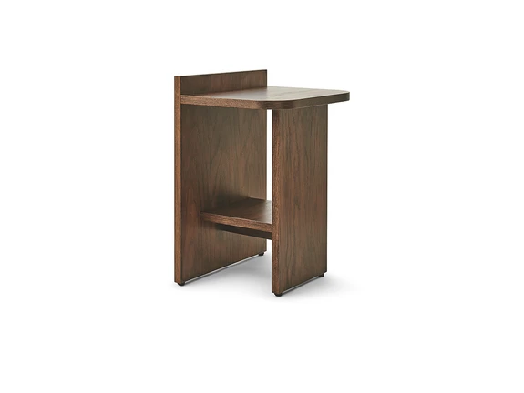 Ismo is made of dark oak, giving it a timeless and robust quality. The table's design is versatile and can be used as an elegant side table in the living room or as a practical bedside table in a hotel room. A special feature of Ismo is that it appears closed from the front and open from the side, adding an extra layer of sophistication to your home.