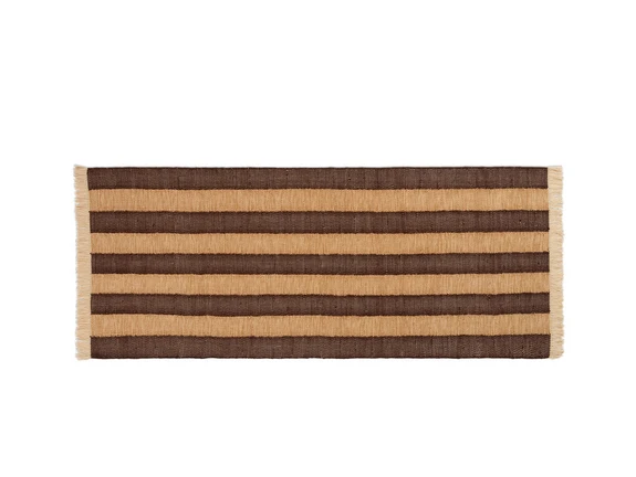 Ives Runner 80x200 Tan/Chocolate combines form and functionality in a beautiful design based on sustainable principles. The rug is made from PET yarn spun from recycled plastic, ensuring responsible utilisation of existing resources. It also provides a strong and durable fibre that withstands the rigours of everyday life and can be used indoors and outdoors. The surface of the weave gives the rug a rough texture that adds a pleasant tactile element to the design. The entire surface is characterised by a wide stripe pattern in rich brown-toned shades that have been carefully selected to make the rug versatile and fit into many interiors.