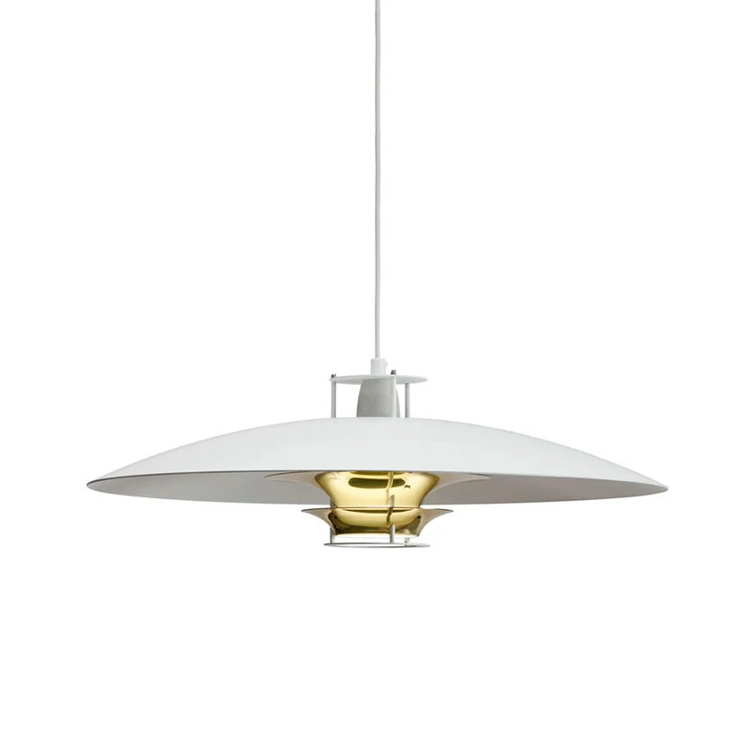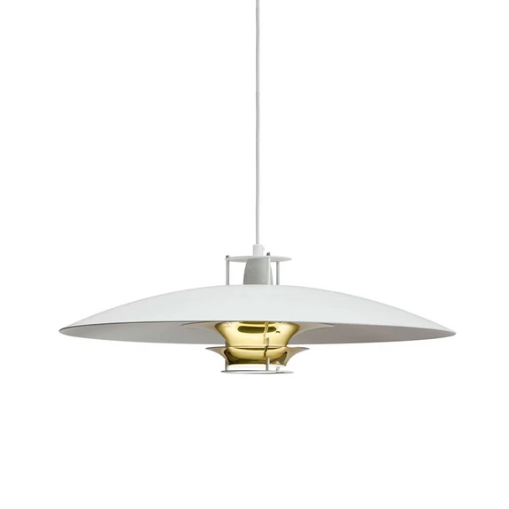 JL341 Pendant White/Brass was designed by Finnish Juha Leiviskä in 1969. The timeless design has a classic expression that fits into any home. The lightly rounded aluminium lampshades are hand-spun and have a white coating. The light source is placed behind the two reflectors to ensure that you don’t get blinded. A soft and comfortable light is then reflected out into the surroundings.