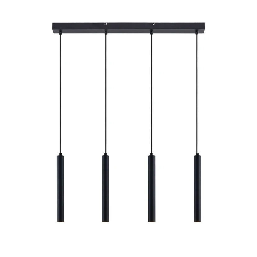 The Kammeron Pendant Lamp Black presents itself in a purist design that makes this model a true winner in the modern, minimalist or Scandinavian-inspired interior. The lamp has a versatile dark surface that blends beautifully with any colour scheme. The four light sources have an elongated cylindrical flashlight shape and hang at exactly the same height to achieve symmetry in the overall composition.