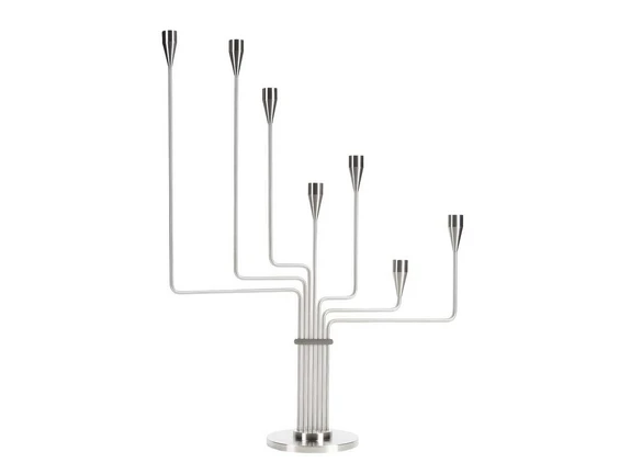The Karlsvognen Candle Holder H63 Stainless Steel is a large and diverse series of candle holders from Piet Hein. The series is inspired by the heavens with their jumble of stars and planets in beautiful constellations that have been the subject of stories in different cultures for millennia. The series is characterised by a highly elegant design with a slim shape and a smooth, monochrome surface available in several colour variants. The candle holders are available both individually and as a set, and several of the models are multi-armed, allowing for a beautiful experience every time they are used. As a beautiful and welcome addition, the range also includes large-sized maxi candle holders that fit on the floor or deep window sill, where they make a beautiful impression and create an inviting atmosphere.