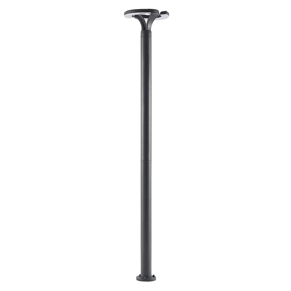 The light shines out from the circular lamp head at the top of the luminaire. Here there is a built-in LED light source that emits an efficient glow in a warm white colour quality. The light is emitted from the underside of the lamp head and therefore shines downwards in a practical downlight that spreads over a large circumference under the lamp, making it ideal for both the driveway and garden path.