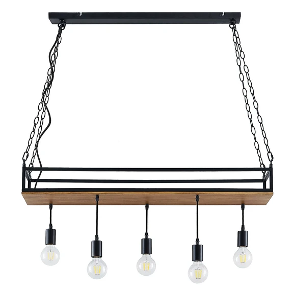 Kirista 5 Pendant Light Wood/Black is a multi-talented interior designer and a dream for any home with a penchant for functionality and practical design that can also be personalised according to taste and needs. Characteristic of this pendant light is its shelf-shaped frame that provides room for extra storage space. This can be used for flower pots, as a spice rack, to display your favourite decorations or to store the many small everyday items. The lamp therefore fits in a wide range of rooms and will quickly become an indispensable part of the kitchen as well as the children's room.