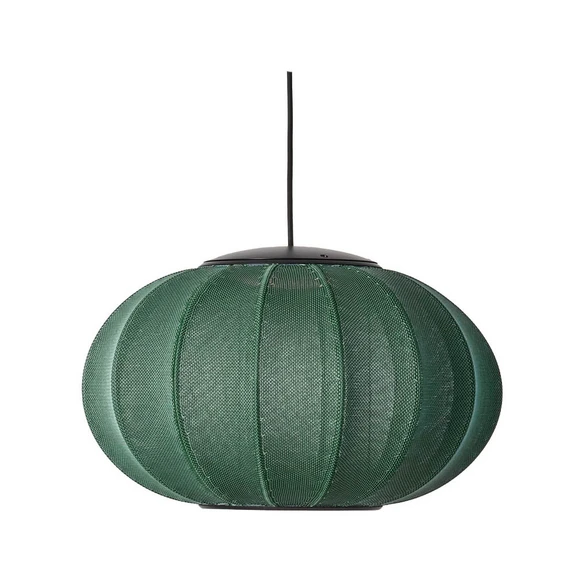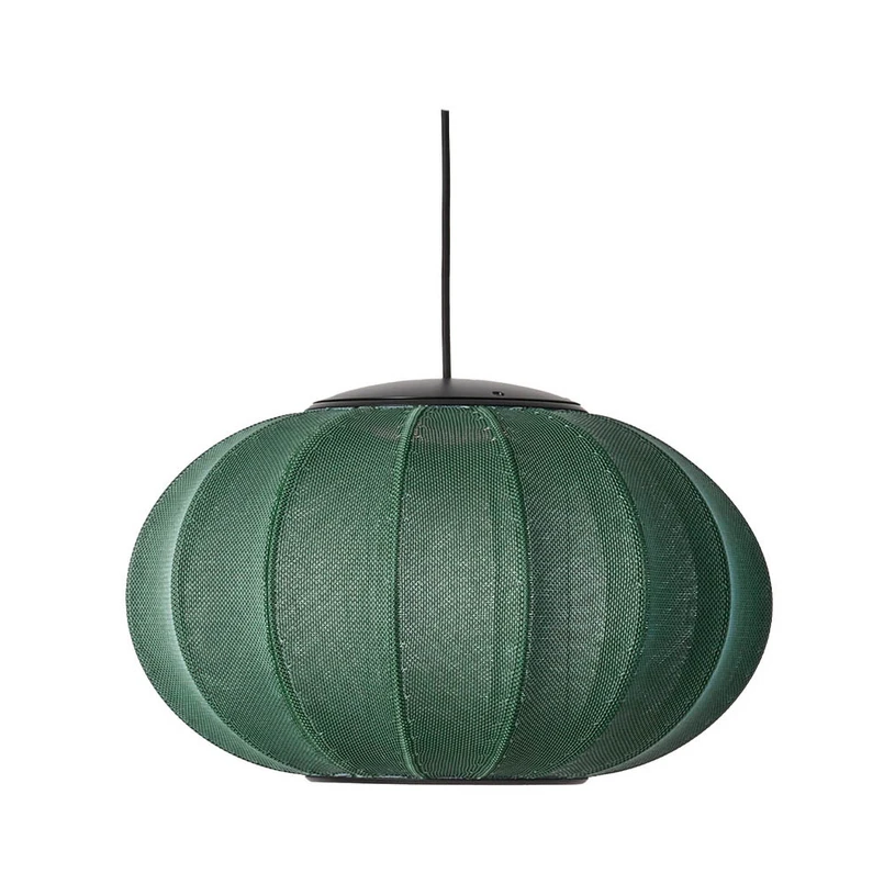 Knit-Wit 45 Oval LED Pendant Light Tweed Green from Made by Hand is a unique pendant light that combines traditional craftsmanship with modern design. Made from aluminium and fabric, the green colour adds a breath of fresh air to any room. Measuring h31 x ø45cm, it fits perfectly in both private homes and public spaces. The knitted structure of the lamp creates a unique light pattern that makes each lamp a decorative work of art.
