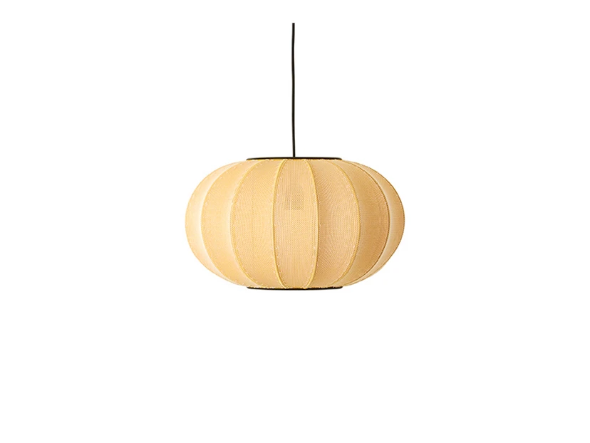 The Knit-Wit 45 Oval Pendant Light Sunrise from Made By Hand is a unique and modern lamp that brings warm and decorative lighting into your home. Although knitting is an ancient craft tradition, it has not previously been utilised for modern design lamps, which was the fundamental ambition of Made By Hand. This pendant lamp, made of fabric in a beautiful beige colour, diffuses the light through the pattern of the yarn, making each lamp unique and decorative. With a diameter of 45 cm, this pendant light fits perfectly in both private homes and public spaces. Knit-Wit family lamps are known for their simple shape, warmth and lightness, and they come in different sizes and colours, making it easy to find the perfect lamp for your interior. Whether you want to add a touch of cosiness to the living room or create a welcoming atmosphere in the dining room, this pendant light is an ideal choice.