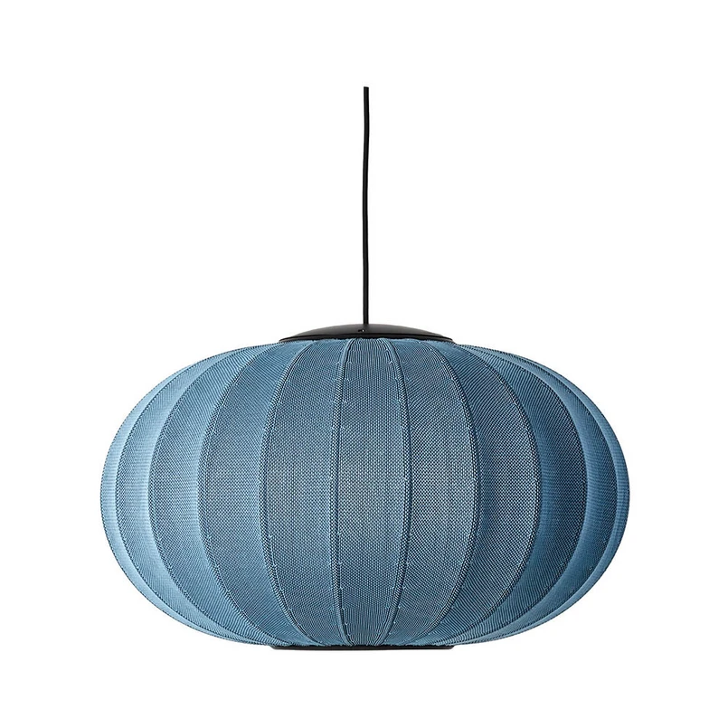 Knit-Wit 57 Oval LED Pendant Light Blue Stone from Made by Hand is a unique pendant light that combines traditional craftsmanship with modern design. Made from aluminium and fabric, the blue colour adds an elegant touch to any room. Measuring h33 x ø57 cm, it fits perfectly in both private homes and public spaces. The knitted structure of the lamp creates a beautiful light pattern that makes each lamp unique and decorative.