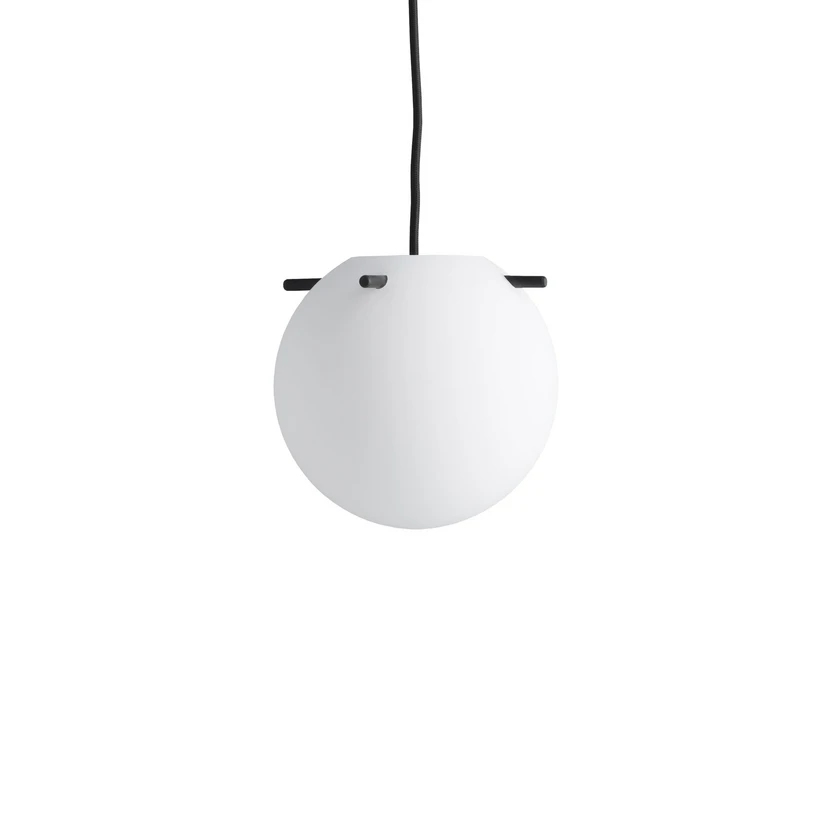 Koi Pendant Ø19 Opal White/Black combines Scandinavian minimalism with Japanese traditions in a beautiful holistic design suitable for the bedroom, living room, hallway and children's room. Named after the Japanese word for gracefulness, the compact, round shape, detailed surface and beautiful brass elements make Koi Pendant the epitome of elegance and effortless lightness.