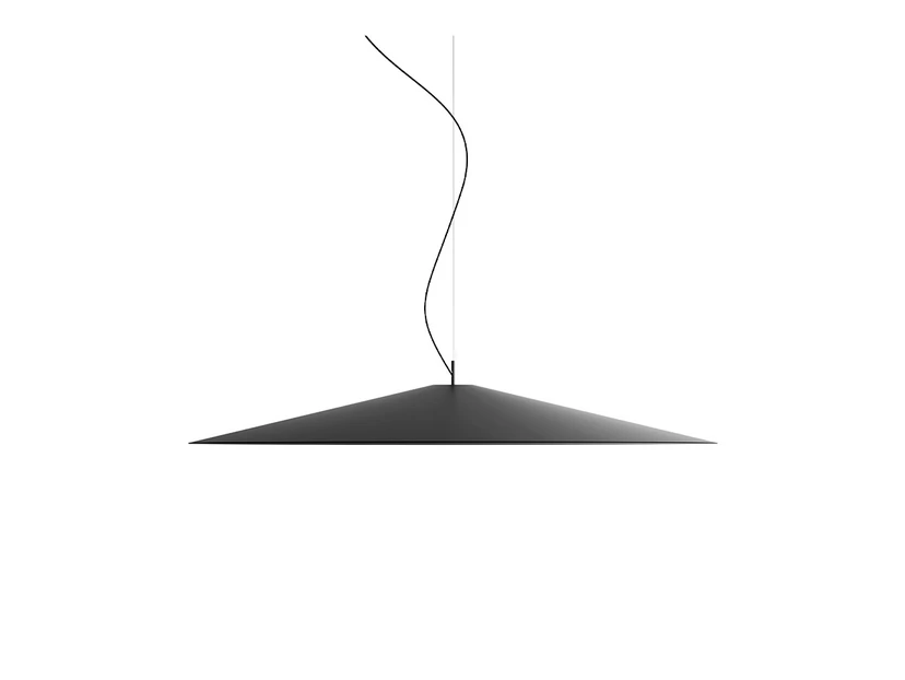 Koinè Pendant Light 2700K Ø86 Matt Black is an elegant and stylish pendant light from Luceplan that fits perfectly into any modern home. This pendant light, with a diameter of 86 cm, is made of aluminium and has a sophisticated matte black finish that adds a touch of class to your interior. The Koinè series is known for its versatility and ability to adapt to different spaces, making it an ideal choice for those who want a lighting solution that is both functional and aesthetically pleasing. The lamp's light source is equipped with a specially designed mineral lens that ensures an even and clear light distribution. The wide light field with sharply defined edges creates a cosy atmosphere, perfect for both the dining room and living room. With the Koinè pendant light you get not just a light source, but a design object that speaks a common language of elegance and functionality.